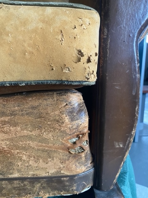 Comment restaurer un fauteuil club pour qu’il ait encore l’air vieux ? Tout est possible. Cependant, plusieurs facteurs doivent être réunis. J’ai gardé le cuir usé des chaises en bon état et cela s’est avéré pratique pour remplacer les pièces usées. Les restes de mousse ont contribué à rendre le siège solide au lieu de ressorts inutiles. Les propriétaires de le fauteuil sont heureux et moi auss